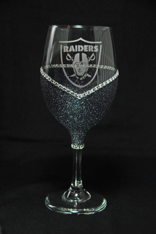 Las Vegas Raiders Bling Stem or Stemless Wine Glasses-Choose your color.