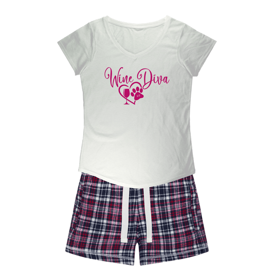 Winey Bitches Co "Wine Diva 2" Girls Sleepy Tee and Flannel Short