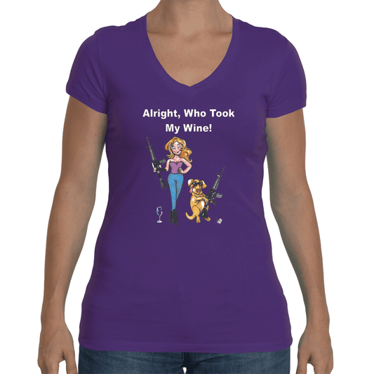 WineyBitches.co Who Took My Wine V Neck Tee