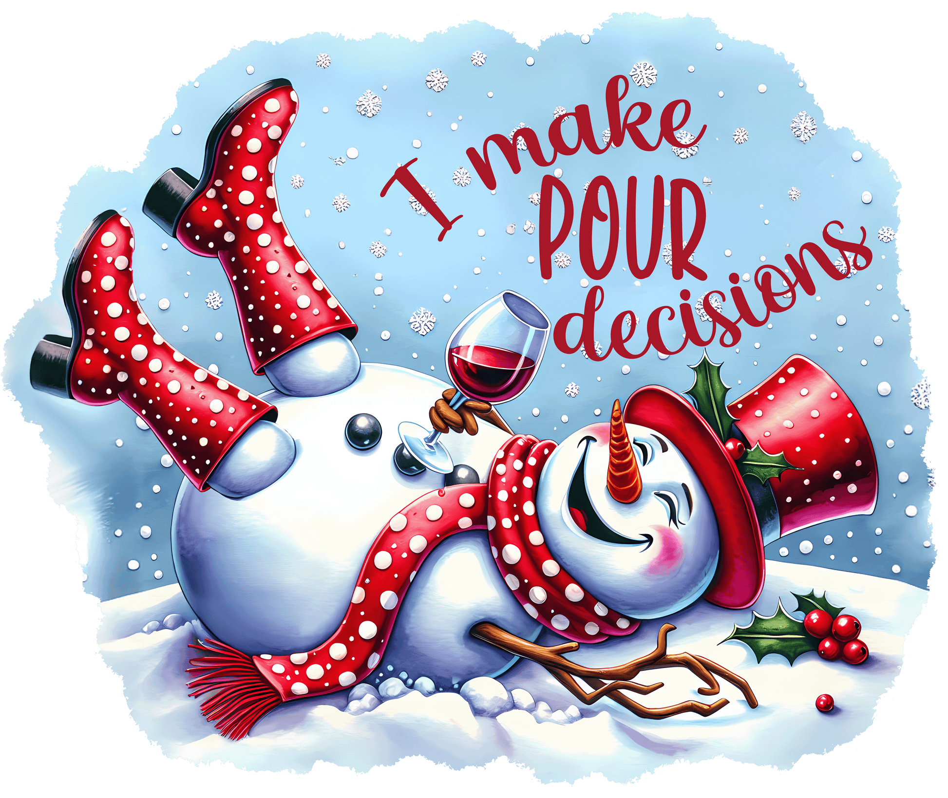 ❄️ “I Make Pour Decisions” Snowman — the most honest holiday self-awareness you’ll ever sip from.