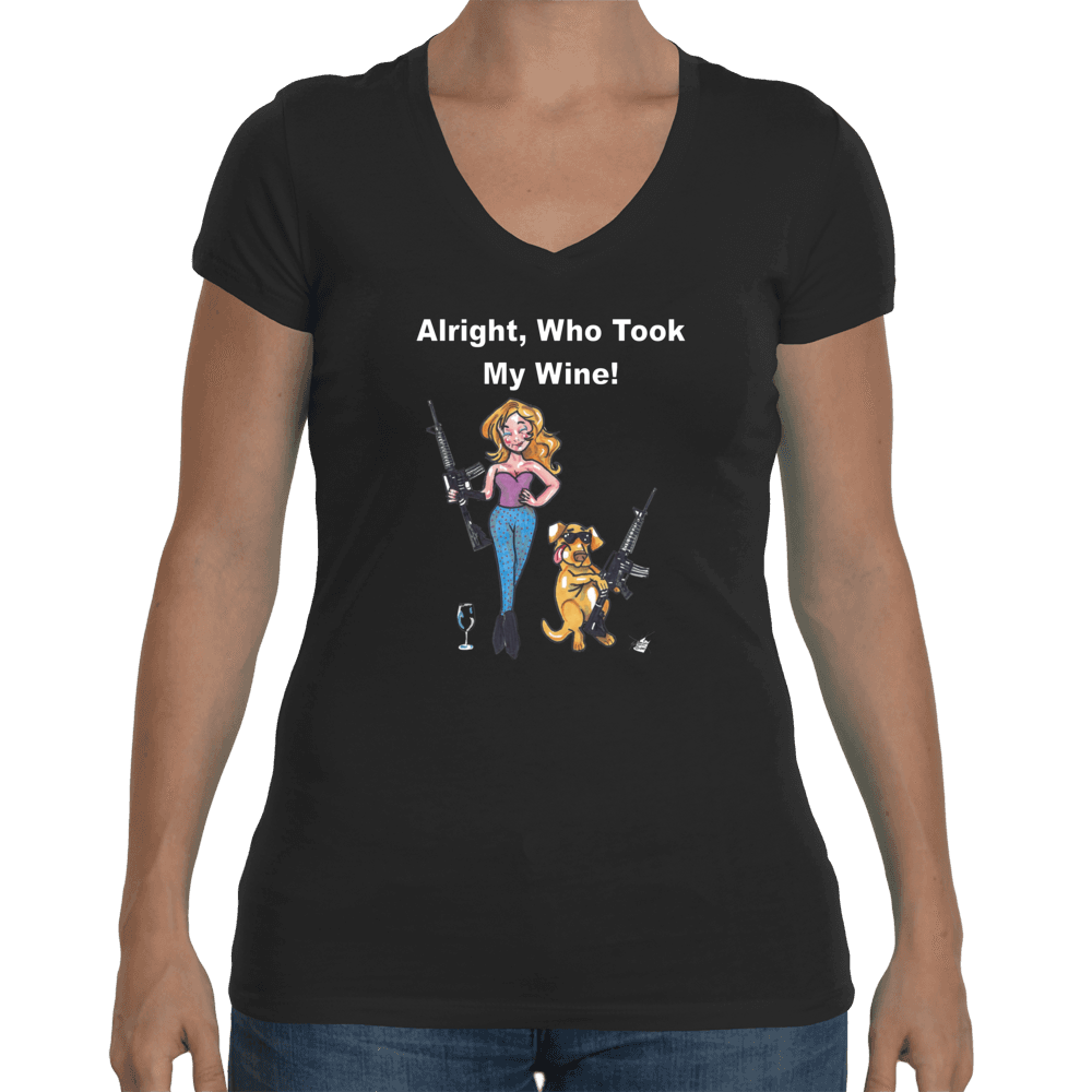 WineyBitches.co "Who Took My Wine" V Neck Tee